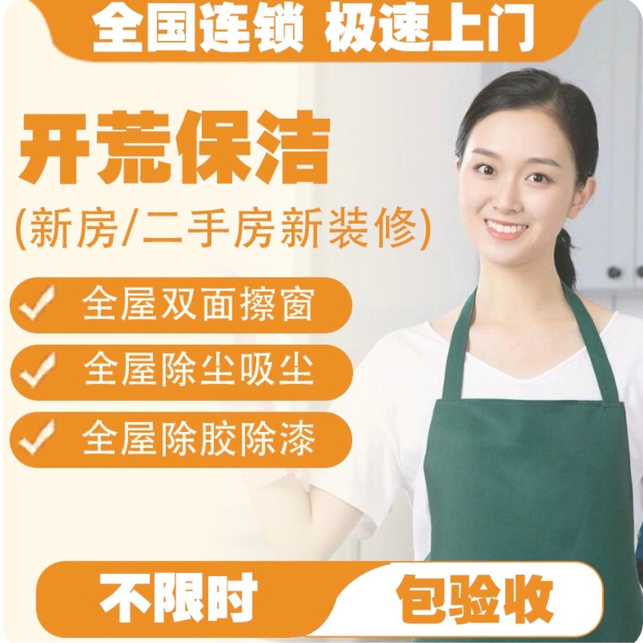 本服务适用于装修后未入住的新居,服务人员携专业清洁工具上门服务。 服务面积按照房屋建筑面积计算,不足50m²按照50m²收费。复式、跃层格局将按使用面积叠加计算,如:复式二层,服务面积=建筑面积+二层使用面积。 服务内容: 1. 涂料、水泥点、玻璃胶等装修痕迹清除; 2. 墙面、顶棚除尘,地面清洁,室内外玻璃清洁; 3. 厨卫整体清洁,瓷砖、龙头管件等清洁; 4. 家电表面清洁,家具橱柜内外清洁; 注意事项: 1. 未装修完成的房屋,建议在装修完成后预约; 2. 大型建筑垃圾请您提前联系装修公司移除; 3. 家电内部清洗、灯具、窗纱、窗帘等清洗不包含在本服务项目内。 服务保障: 1. 价格透明:不现场加价,无额外收费; 2. 不满意重服务:若出现服务质量问题,免费返工。