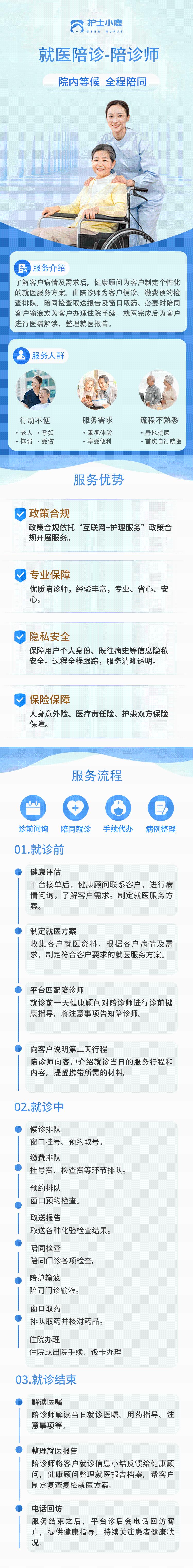 【新年服务费】2026年2月16日至2月23日(除夕-初七)服务正常开展,每单额外收取200元节日服务费。2026年2月24日(正月初八)起服务恢复正常,按日常标准执行。请您提前做好安排,如需预约服务,请提前联系客服或通过平台下单。 一、服务说明 优质陪诊师,提供陪同就医服务,包含诊前关怀、全程陪同、事项代办(取号、缴费、取药)、协助检查等一站式服务。 二、服务流程 (1)预约下单:患者需提前48小时预约下单。 (2)订单审核:24小时内完成订单审核。 (3)陪诊员匹配:平台客服联系患者了解病情和需求,并安排合适的陪诊员。 (4)开始服务:陪诊员按约定时间地点与患者会面,协助患者代办挂号、缴费、取药等。 (5)服务结束及后续跟进:服务结束后,平台致电客户,进行客户满意度回访。 三、注意事项 (1)超时费用:每超时10分钟加收10元。 (2)取消须知: 1、陪诊师未接单,不扣费。 2、陪诊师已接单未出门,取消订单时间大于约定时间2小时,不扣费。 3、陪诊师已接单未出门,取消订单时间小于约定时间2小时,扣除订单金额30%。 4、陪诊师已出门未抵达服务地点,扣除订单金额50%。5、陪诊师已抵达服务地点,因客户身体状况发生改变,无法继续提供服务,扣除订单金额50%。 6、陪诊师已抵达服务地点,因客户原因取消服务,未提供服务,扣除订单金额70%。 7、陪诊师已经开始服务,因客户原因取消订单,扣除订单金额100%。